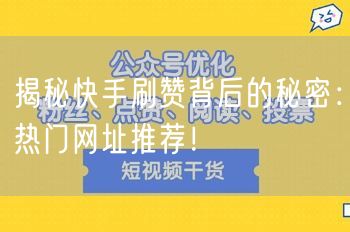 在快节奏的社交媒体时代,快手的用户量与日俱增,人们对于获取更多点赞和关注的需求也随之增长。然而,背后的真相究竟是怎样的呢?本文将带您深入了解快手刷赞背后的秘密,同时推荐一些热门网址资源,帮助您更好地探索社交网络的世界。