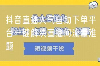 随着抖音直播的火爆发展,越来越多的商家和个人开始利用这一平台进行产品推广和品牌建设。然而,直播间流量问题成为了许多运营者面临的难题。为了吸引更多观众,提升直播间人气,抖音直播人气自助下单平台应运而生。本文将介绍这一平台如何一键解决直播间流量难题,助力抖音直播运营。